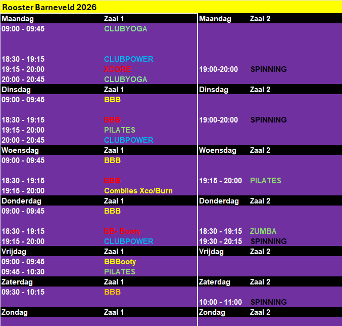 Lesrooster sportschool Barneveld